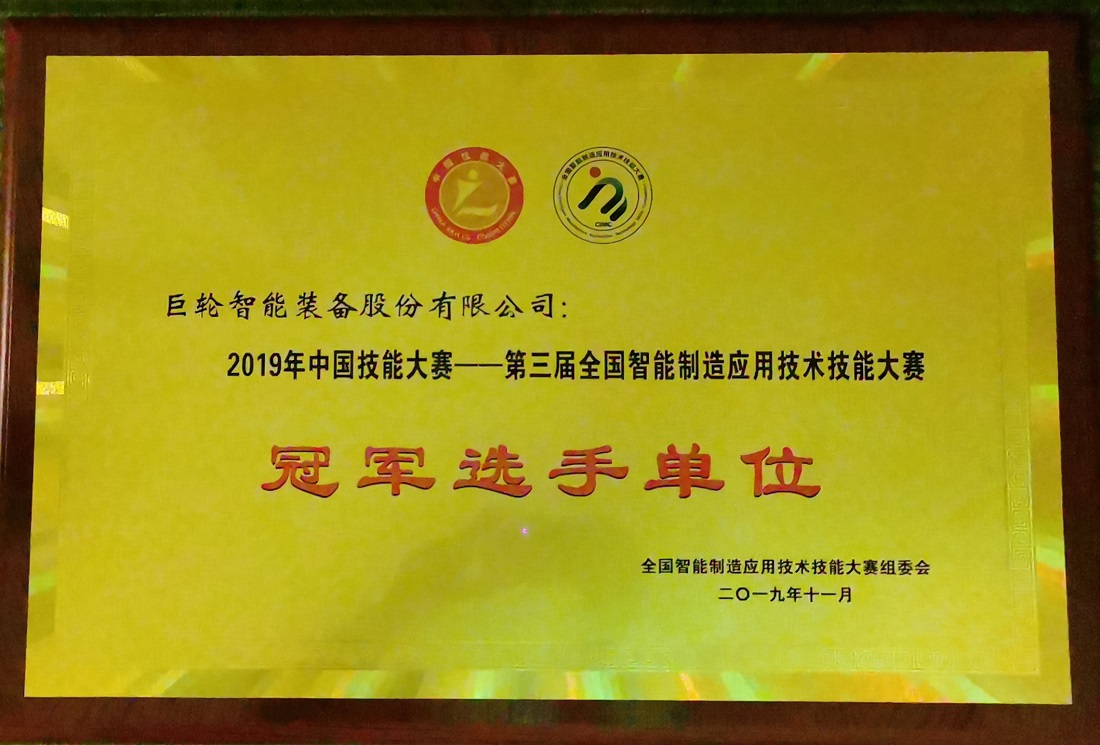 巨輪智能獲2019年中國技能大賽——第三屆全國智能製造應用技術技能大賽“冠軍選手單位”殊榮