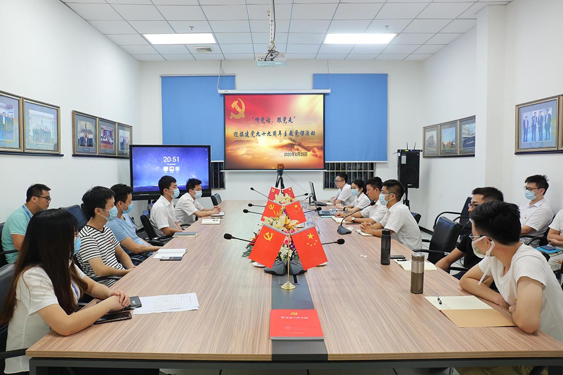 發布時間:2020-06-29為慶祝中國共產黨成立99周年,激勵支部黨員不忘初心、勇於擔當,堅定理想信念,加強黨性修養。6月29日,巨輪(廣州)機器人與智能製造有限公司黨支部響應“紅聯共建”小組黨員共訓號召,組織公司黨員及入黨積極分子,遠程視頻鏈接高新興集團黨課現場聽取“學習貫徹習近平總書記重要講話精神和兩會精神”主題黨課活動。本次黨課由中共廣東省委黨校黨史黨建部副主任王玉雲教授授課。