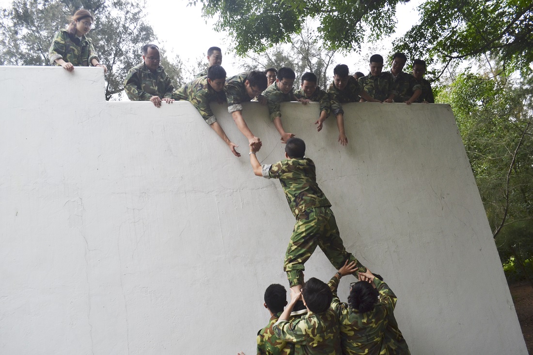 Looking through the graduation wall is to develop the ability of students to make full use of resources. The team of internal trainers should learn how to think about problems, analyze problems and develop awareness of programs, make use of resources around them to make decisions, and rationally allocate human resources to conduct on-site organization, command and coordination of training sites. Through the wisdom of everyone, look through the graduation wall and take a group photo on the graduation wall to stimulate the overall cooperation of the students.