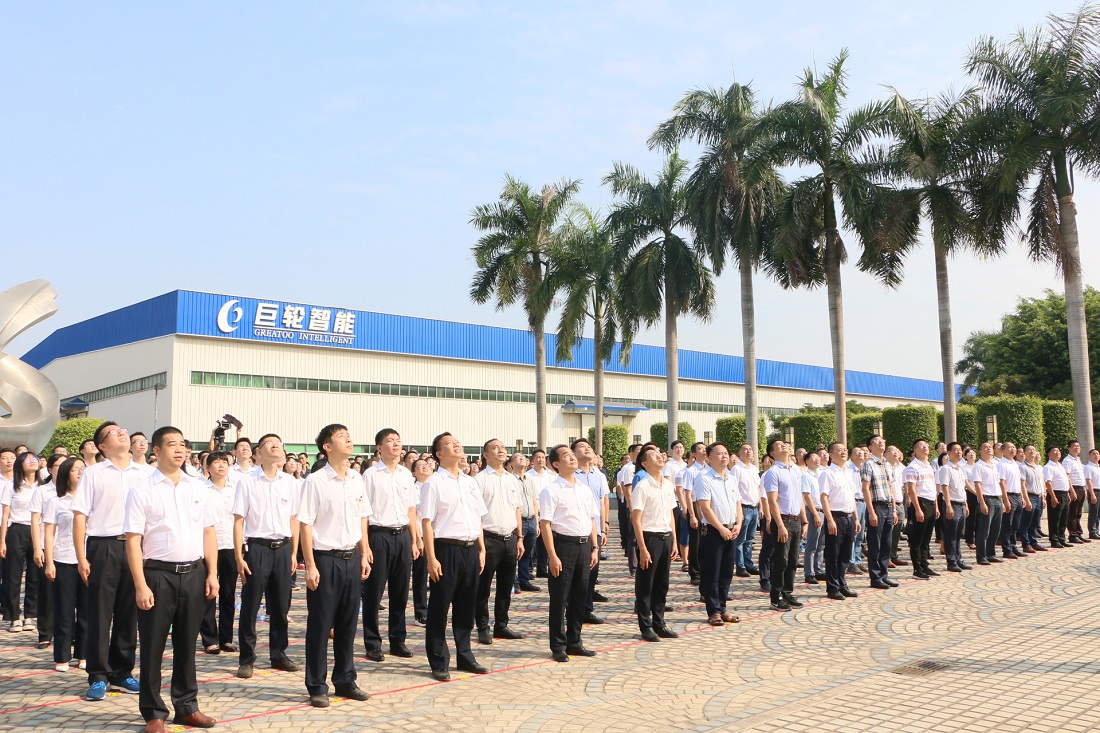 At 9 o'clock in the morning, all audience stood up. After a brief opening remark, the host announced the official start of the flag-raising ceremony. The flag guards, who were the company's security guards, took a vigorous step to escort the bright five-star red flag to the flag-raising platform. In the solemn national anthem, the five-star red flag is rising against the rising sun. The leading cadres of the units in Jiedong District and Jiedong Economic Development Zone, the representatives of all the members of Greatoo pay attention to the national flag with high respect, singing the national anthem, wishing the great motherland prosperity with a high spirit.