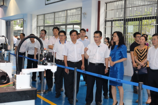The delegation watched the lion dance performed by robots and visited intelligent equipment such as automatic flexible production lines, automatic stereoscopic warehouse, 3C automatic processing units and cooperative carrying by multiple robots. With the introduction of Yang, the guests watched a series of industrial robots weighting from 20kg to 500kg and the wide applications of automobile welding, logistics carrying, electronics and electrical appliance assemble. At the same time, they came to know the core components of robots, RV reducers with characteristics of high precision and reliability, high efficiency, balanced transmission, low noise and long service life. The company has broken the technological monopoly by foreign countries and reduced a large part of imported reducers.