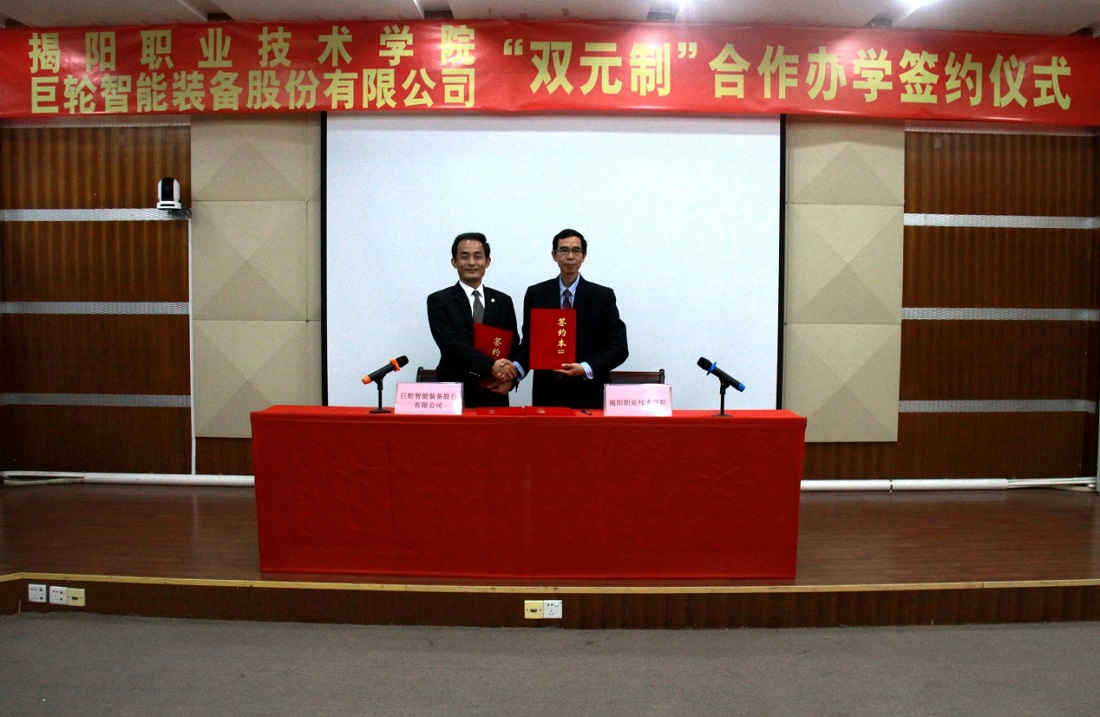 Createtime:2017-02-09On January 5, Jieyang Vocational and Technical College, Greatoo"dual system" cooperation school signing ceremony was held in Jieyang College.Jieyang Vocational and Technical College Party Committee Li Wensheng secretary, Gong Shanchu Dean, Li Guixin vice president,Greatoo executive manpower Wu Yingxiong director and other leaders, as well as Jieyang Vocational and Technical College teachers and students attended the ceremony.