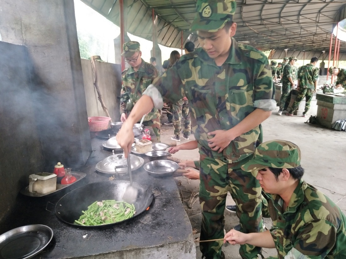 When arrived at the Moral Education Base of Jieyang,we put on green uniforms, put on the green cap quickly,and began a new military life.Under the command of the instructor,all new staffs compiled into four squads,and each team has its own team name, team flag, slogan, captain,and team flower.And on the playground, the loud slogan sounded from time to time.