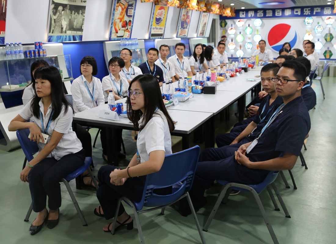 Subsequently, under the guidance of a director of the factory, we came to visit the production workshop. There are four major production lines in the factory of Pepsi CO., Inc., namely: PET production line (bottling cola), CAN production line (Canned Coke), mineral water (mineral spring water) production line and BIB (syrup) production line, and looking down at the workshop's PET and CAN lines through the glass wall of the channel, we can clearly observe the entire beverage production line where no one is in the workshop. Director smiled and told us that the relevant operators are all in the background, the basic line does not require manual operation, and the current production of four production lines up to 24 million TEU every year.