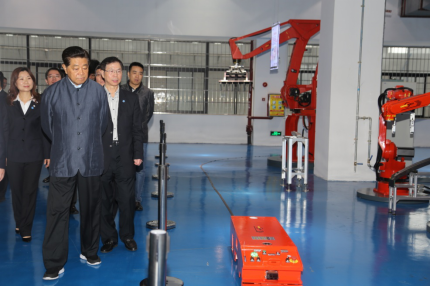 At first, Jia watched the south lion dance performed by robots and asked the company whether our robots could be applied in the production line. When he learned that Greatoo’s industrial robots have already been applied in the production lines of Zhongce Rubber Group Co.,Ltd, the biggest brand manufacturer of rubber in China, and Minth Group ranking second in the manufacturers of automobile parts, he showed great satisfaction. Later, accompanied by Chairman Wu, he visited our company’s RV reducers, robot controllers, robot calibration system, robot welding, articulated arms dragging demonstration, robot polishing, flexible production line and the demonstration zone of intelligent factories. During the visit, Chairman Wu gave a detailed introduction of the core components of robots, the robot controllers with Greatoo’s self-owned brand under the cooperation of China and Israel, the intelligent equipment under the cooperation of China and Germany and the company’s development plan of intelligent robots.
